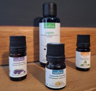 Pour réaliser cette synergie, j'ai associé 3 huiles essentielles très efficaces à une huile de support de jojoba :